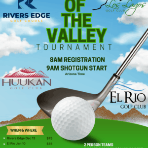 Battle of the Valley Golf Tournament Saturday, December 13th 2025 2-Person Scramble/Best Ball w/ Handicap $75 per player Includes Golf, Cart, Range Balls, Payouts & Prizes Call (760) 326-3931 to Sign Up Today!